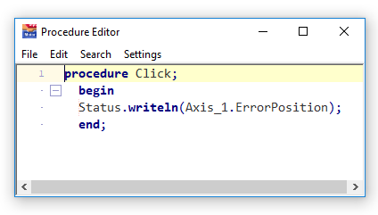 This procedure writes the difference between actual position and the commanded position to the status display: