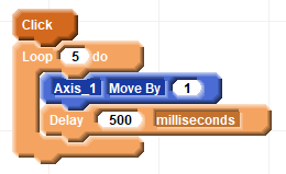 This block list performs 5 individual moves with a 1/2 second delay between each one: