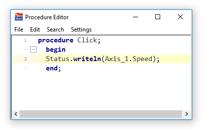 This procedure writes the assigned speed of Axis_1 to the status display: