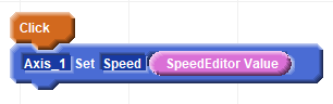 An editor on the console is being used to enter a speed value. A Set Speed button next to the editor uses the editor speed value to set an axis speed: