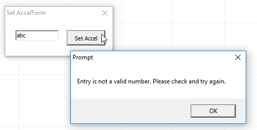 Consider this similar example that sets acceleration. The entered value needs to be numeric or a Read Escape Code will be generated. The value needs to be greater than 0 or the Set Accel block will generate an Accel is 0 or Negative Escape Code.