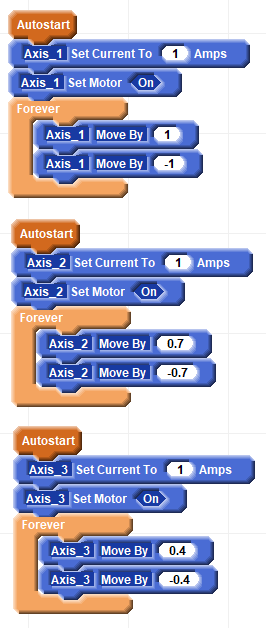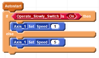 This block list sets motion parameters based on a switch input examined during startup.