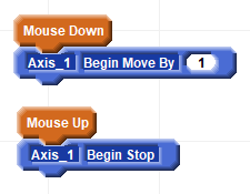 This set of button events steps the motor whole steps if the button remains down, or stops early if the button is released early: