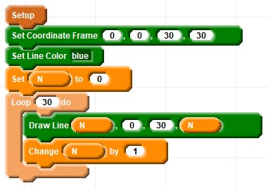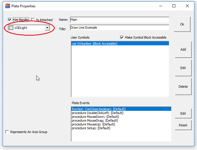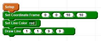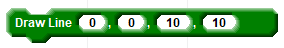 Draw Line is used to draw a line on the plate as governed by the current coordinate frame, line color, and line style. The parameters are X1, Y1, X2, Y2. The line is drawn on the plate that has the block list using the Draw Line block. Pltting and drawing procedures must be defined