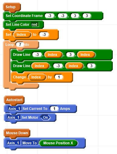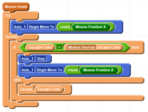 This example shows an axis moving to an indicated position on a form based on a mouse click: