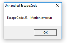If the new target is behind the current motion rather than still ahead this re-targeting cannot be done. In this case a Motion Overrun Escape Code is generated: