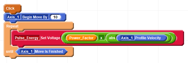 The Abs block is needed since the Profile Velocity block will return a negative value for motion occurring in the negative direction but the voltage needs to remain positive regardless of direction.