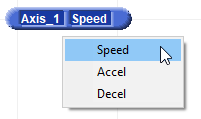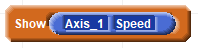 The Speed block returns the current speed setting for the axis or axis group in User Units per second. To retrieve the currently active profile speed use the Profile Velocity command.