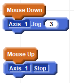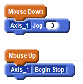 Before the motor comes to a complete stop the mouse is clicked down again and the Mouse Down event triggers requesting the motor Jog to a speed of 3.
