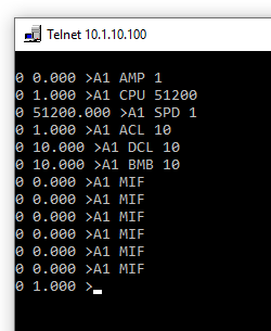 The following sequence of commands configures a motion profile, begins a move, and checks to see when the move is finished.