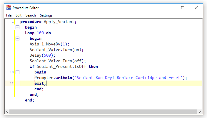 Exit can be helpful when a problem is discovered inside of loops and it is best to just stop. In this example a sealant cartridge runs dry in the middle of a run. It is best to just exit and not continue running the remaining loop count without sealant.